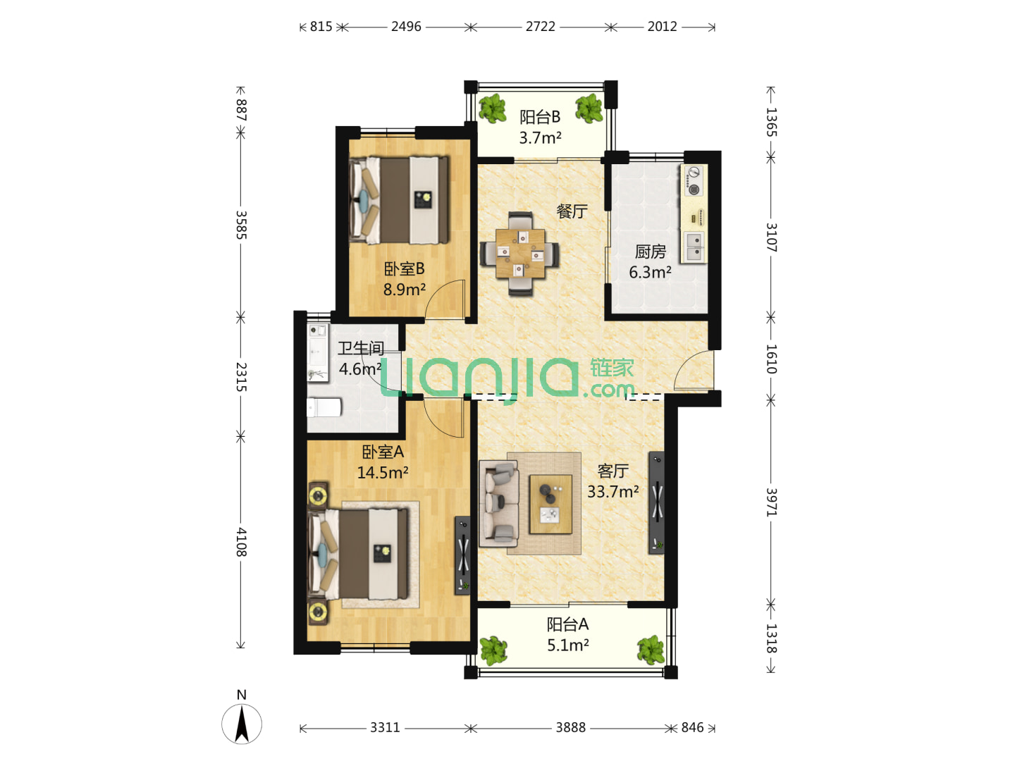 庭院深深,2室2厅2卫 104㎡