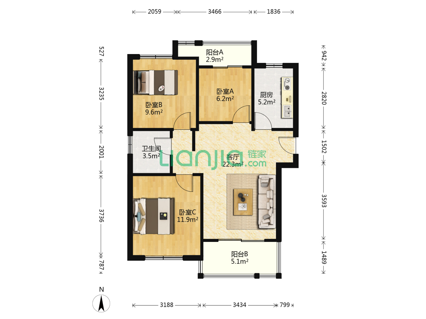 3室2厅2卫 129㎡