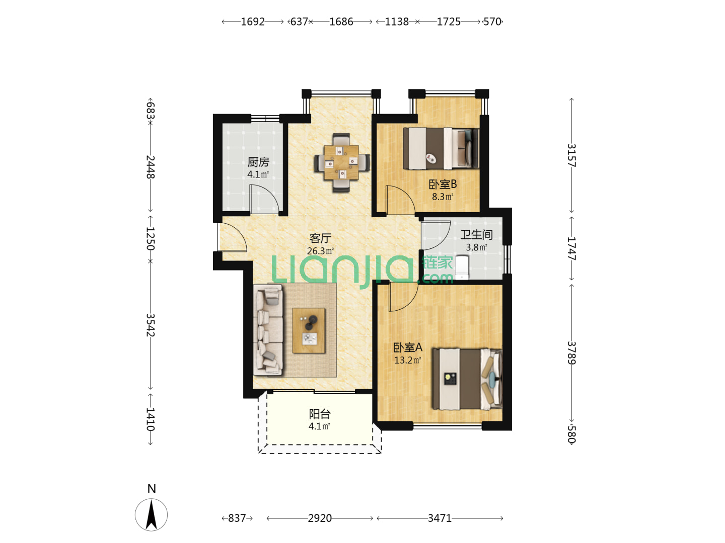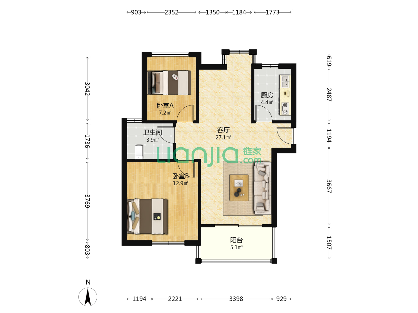 2室2厅2卫 90㎡