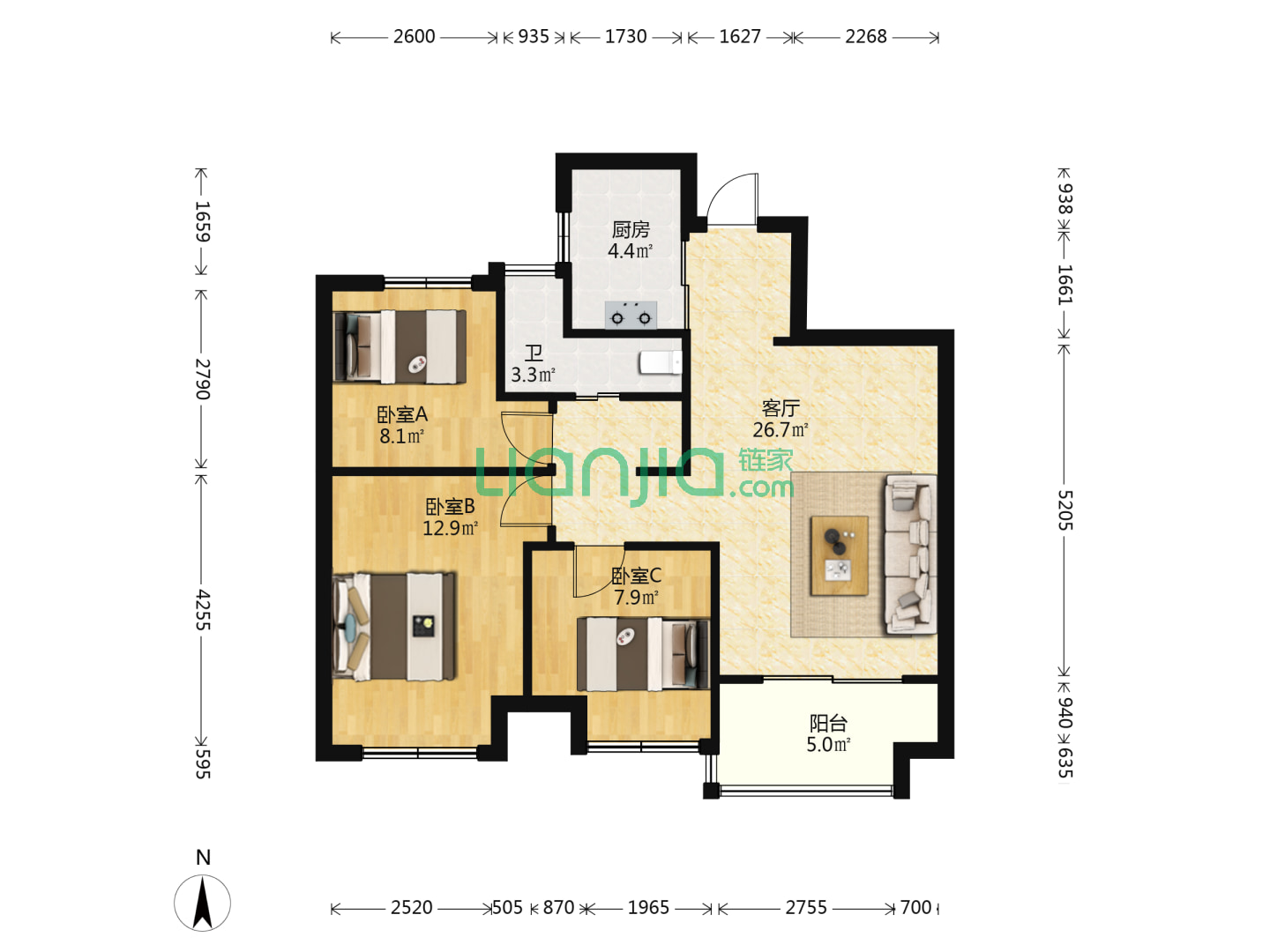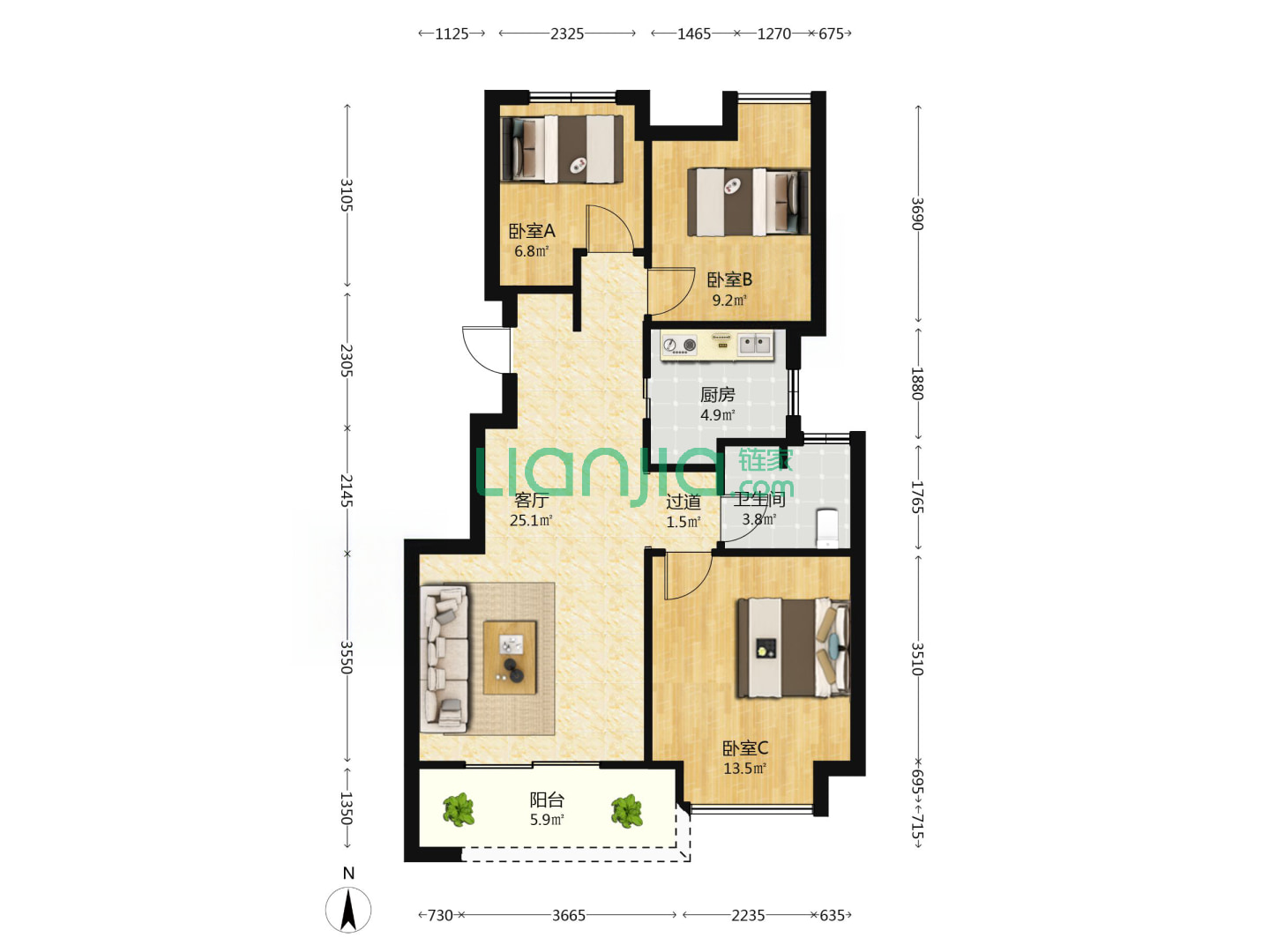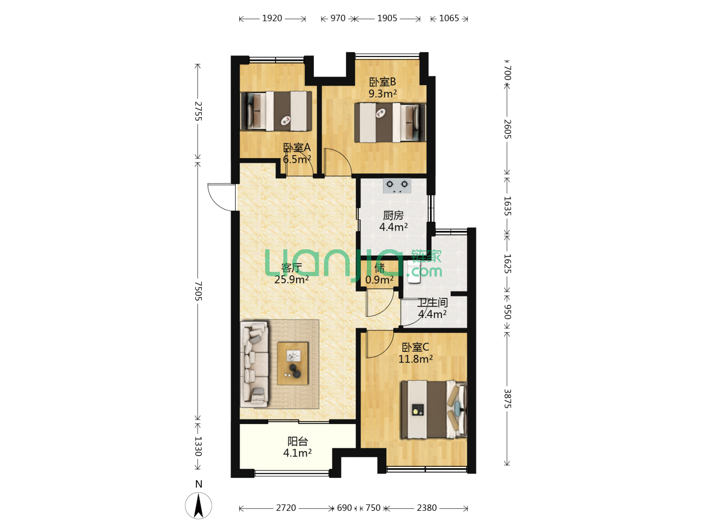 万科良渚文化村未来城,3室1厅1卫 86㎡