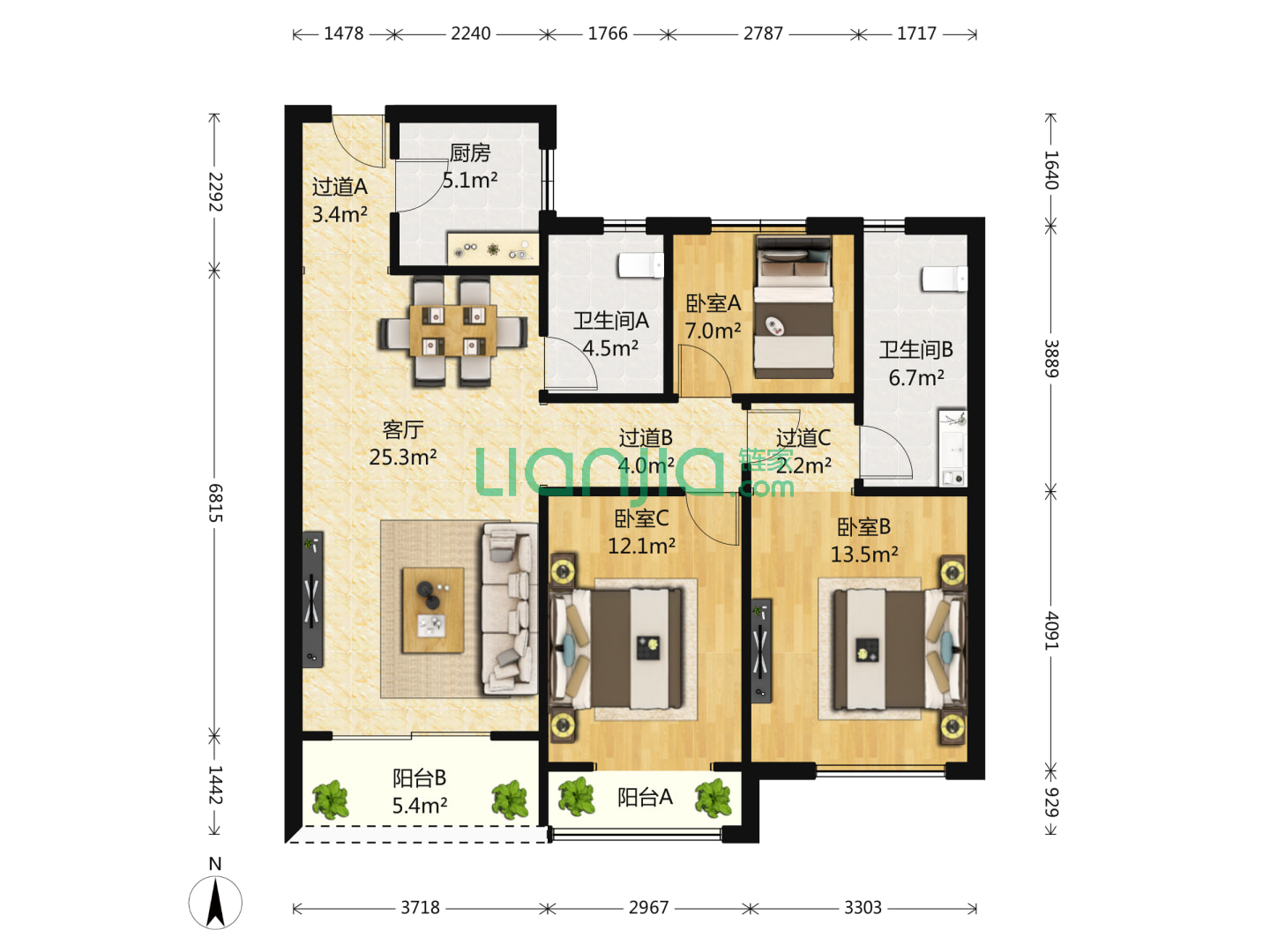 中国铁建江南国际城,3室2厅2卫 87㎡