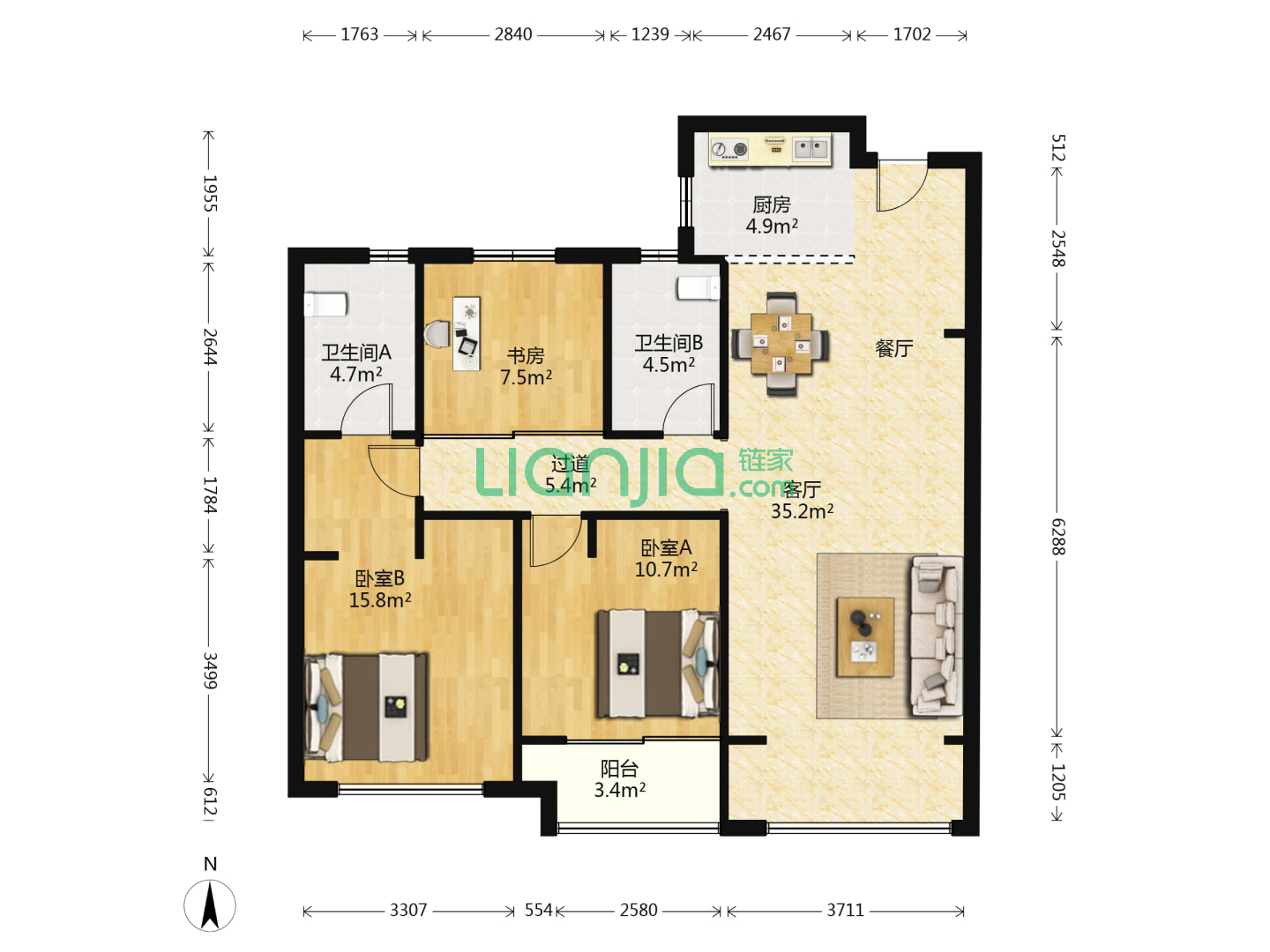 中国铁建江南国际城,3室2厅2卫 120㎡